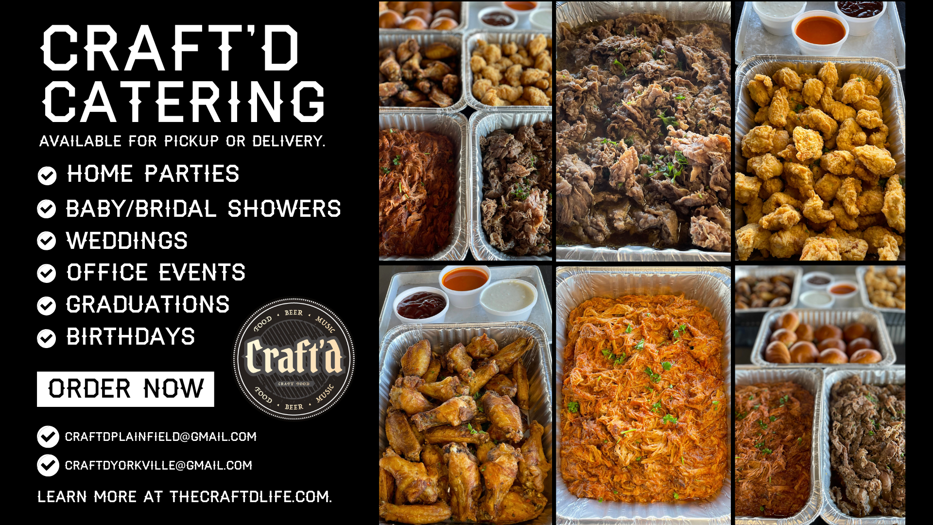 Let Craft'd Cater your next Party or Event!