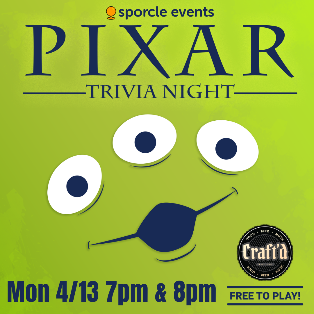 Trivia Monday at Craft'd Plainfield - 4/13/26 - Pixar Films Trivia