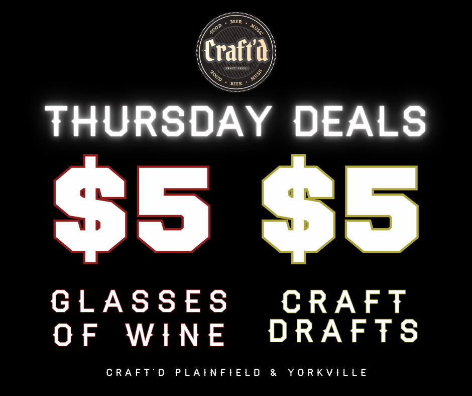 Available for Dine-In, Carryout and Delivery at Craft'd Yorkville.