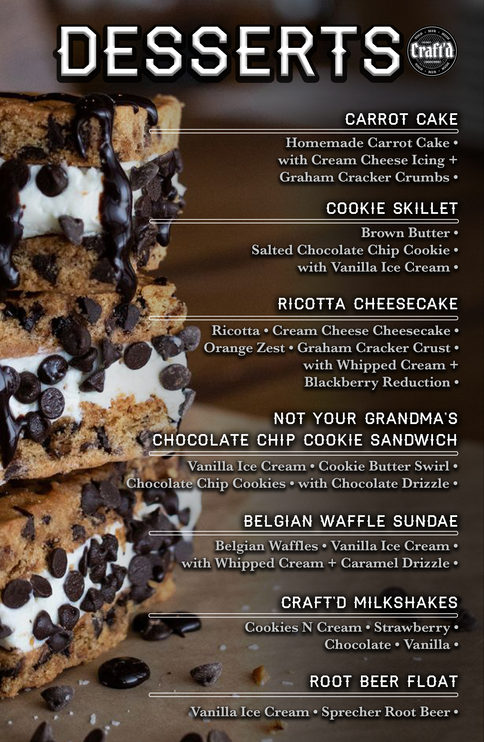 Available at Craft'd Plainfield for Dine-In, Drive-Thru, Carryout and Delivery (3rd Party).