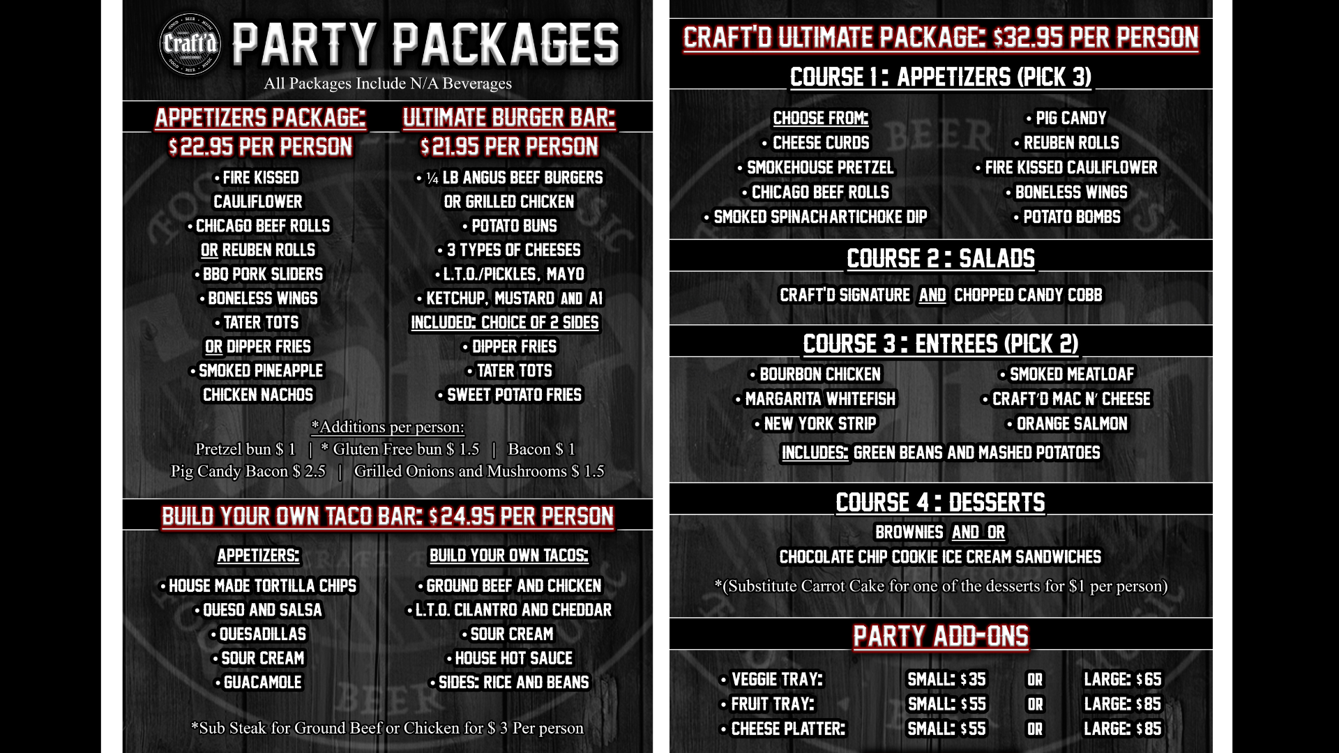 - Full Menu + Party Packages