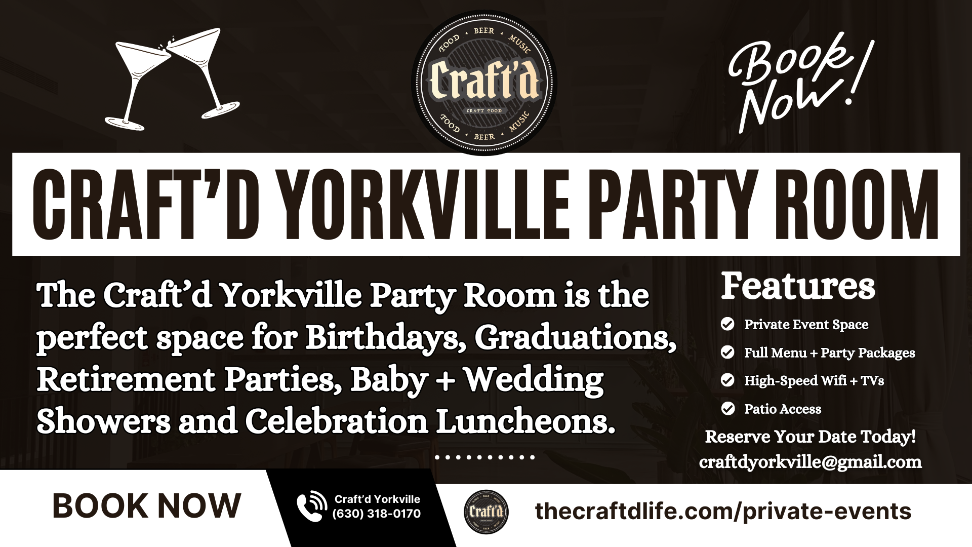 Reserve our Private Event Spaces at Craft'd Plainfield & Yorkville!