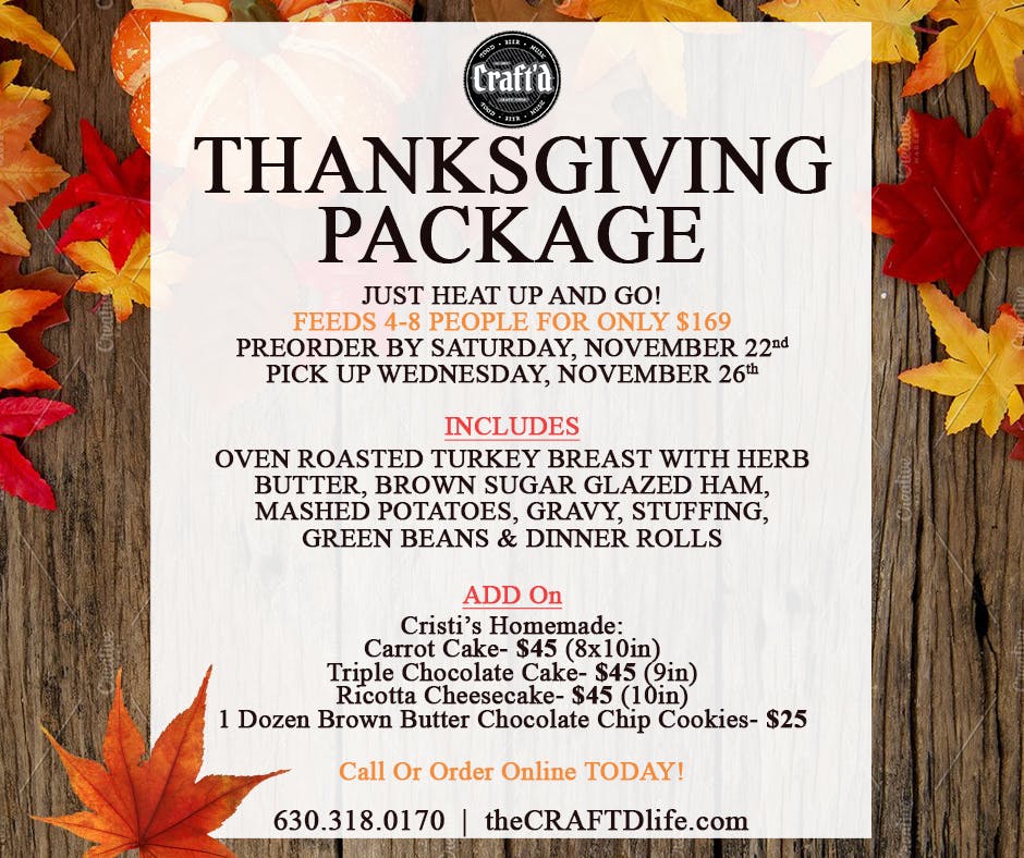 Feeds 4-8 people for only $169. Pre-order by Saturday November 22nd and pick up on Wednesday November 26th.