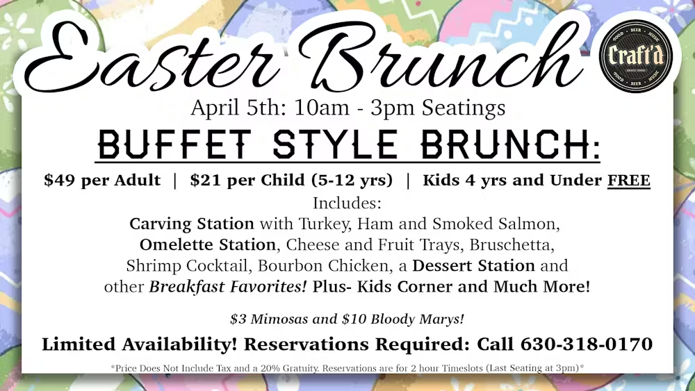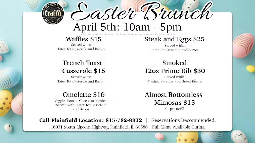 Easter Brunch Menu at Craft'd Plainfield - Sunday April 5th