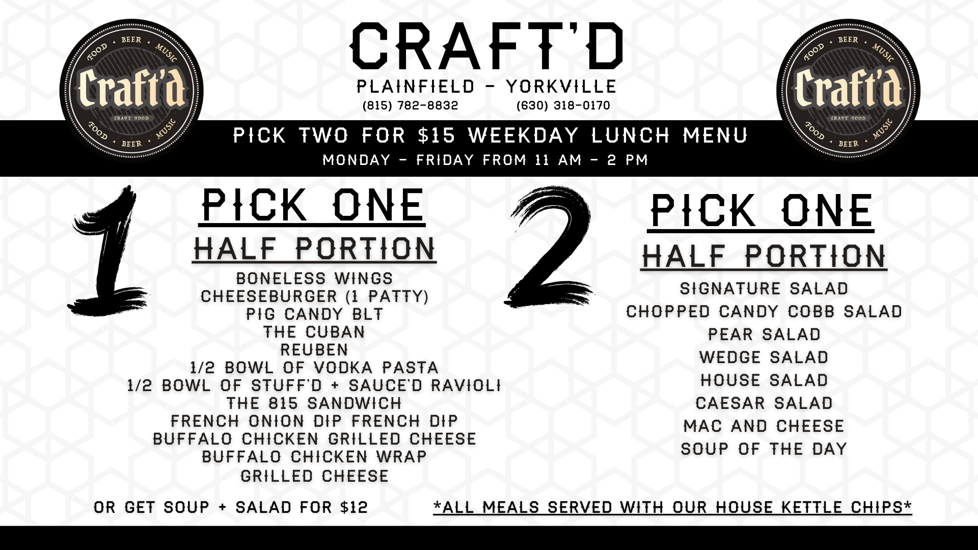Monday - Friday from 11 AM - 2 PM at Craft'd